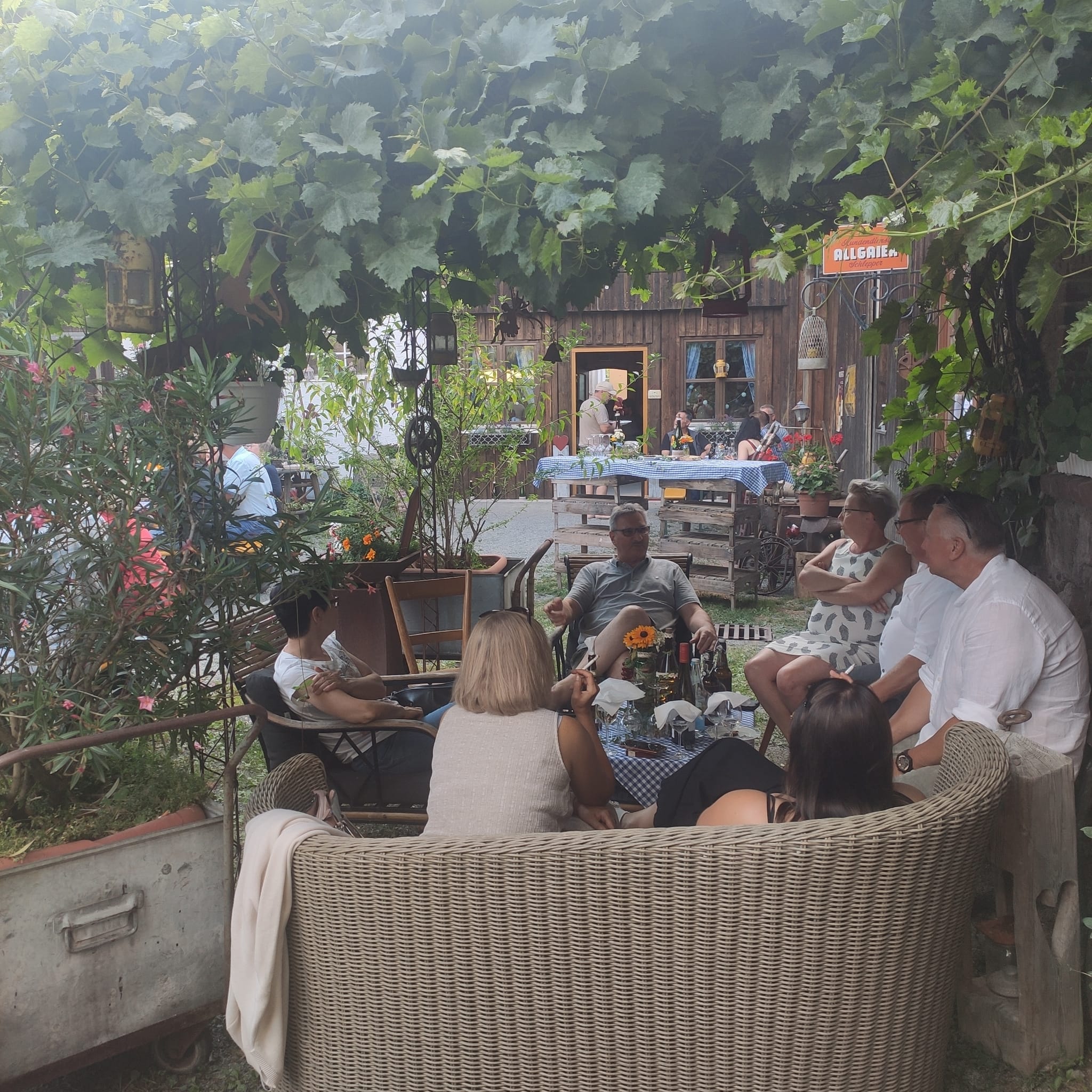 Einen Volltreffer gelandet hat der OWV mit seinem traditionellen Weinfest, das in diesem Iahr erstmals im ehemaligen Busl-Hof stattfand. Die zahlreichen Besucher zeigten sich vor allem begeistert von der Atmosphäre, die sowohl im Innenhof wie auch in der Festhalle herrschte. Maßgeblichen Anteil daran hatten die Eigentümer des Busl-Hofes, die Familie Senfft; Mit unheimlichen Aufwand und viel Liebe zum Detail schuf die Familie Senfft ein Ambiente für ein Weinfest, das seinesgleichen sucht. Eine kleine Sitzecke unter einer Weinlaube, zahlreiche Utensilien, aus vergangener Zeit, vielerlei Deko – größtenteils im Bezug zum Thema „Wein“ – und liebevoll dekorierte Tische sorgten für ein ganz spezielles Flair. In der Festhalle hatte man das Gefühl, tatsächlich in einem Weinkeller zu sitzen. Da für sorgten große gerahmte Wandbilder aus Stoff mit typischen Weinmotiven, wie etwa lagernde Weinfässer. „Schöner kann der Rahmen für ein Weinfest gar nicht sein“ -so war immer wieder von den Gästen zu hören. Die sorgfältig ausgesuchten Weine kamen bei den Besuchern gut an und auch das Angebot an Speisen fand reißenden Absatz; Der laue Sommerabend trug ein Übriges zum Erfolg des Abends bei“.