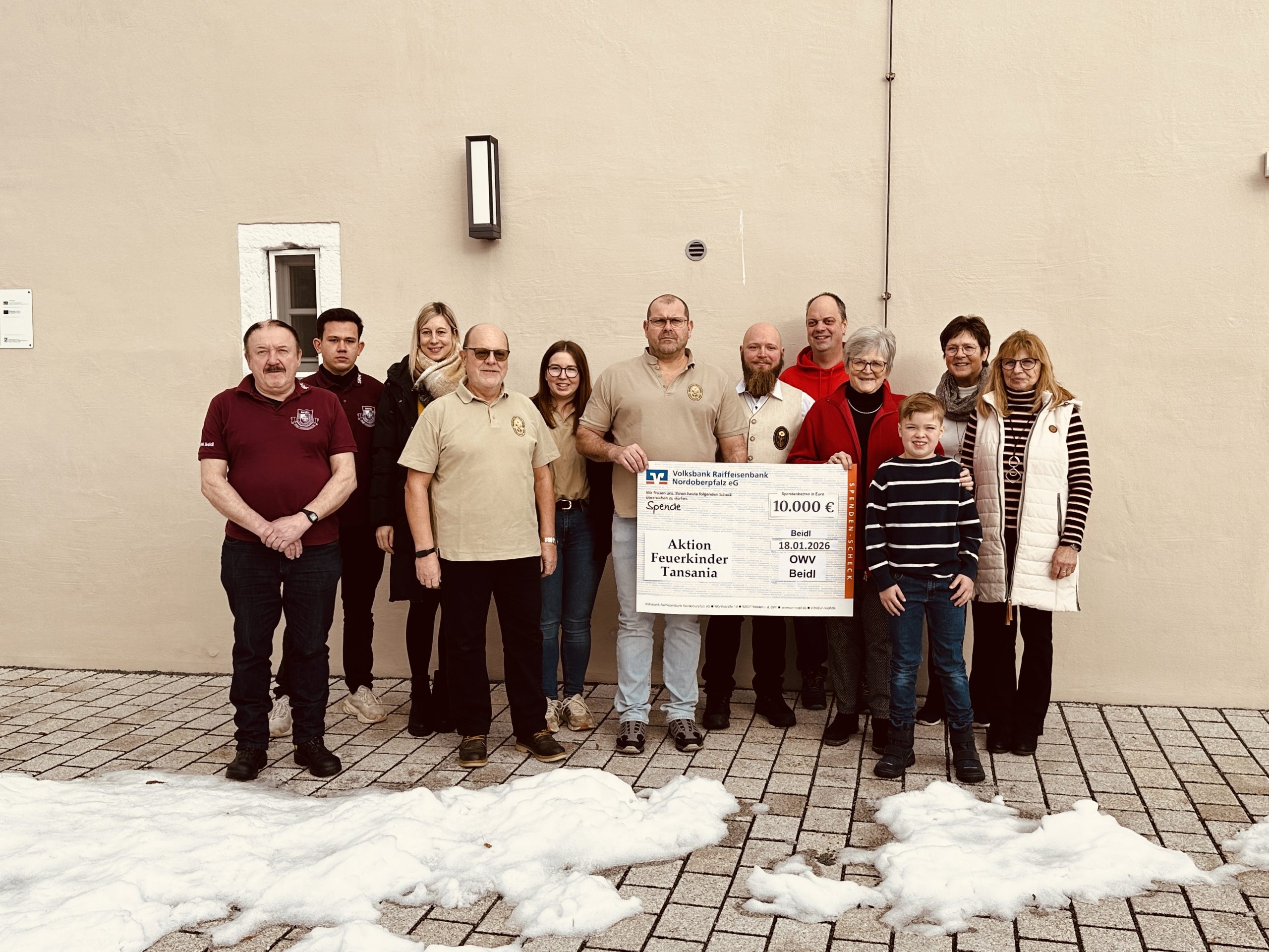 Am Sonntag, den 18. Januar 2026 erfolgte dann eine weitere Spendenübergabe an Frau Doktor Annemarie Schraml für die von ihr gegründete Aktion ,,Feuerkinder Tansania” im Kooperatorenhaus Beidl. Martin König konnte zu Beginn dieser Veranstaltung Vertreterinnen und Vertreter von der Soldaten-und Reservistenkameradschaft Beidl, der Freiwilligen Feuerwehr Beidl, dem Katholischen Frauenbund, den Ministranten und natürlich dem Oberpfälzer Heimatverein Beidl, welcher auch die Verasnstaltungsleitung hatte, begrüßen. Es konnte an Frau Doktor eine Spende in Höhe von zehntausend (10.000 !) Euro übergeben werden. Diese Summe setzt sich aus dem Erlös der Beidler Dorfweihnacht, einigen Spenden auf ein gesondertes Konto und einer Zuzahlung aus der Vereinskasse des OWV zusammen. Wie gesagt, seit nunmehr 14 Jahren spendet die Dorfgemeinschaft Beidl jeden bei solchen Veranstaltungen erwirtschafteten Cent an die Feuerkinder in Tansania und dabei ist mittlerweile eine ansehliche Summe in fünfstelliger Höhe an diese Aktion überwiesen worden. Allen Mitwirkenden und natürlich allen Spendern an dieser Stelle ein ehrlich gemeintes und herzliches Vergelts Gott!