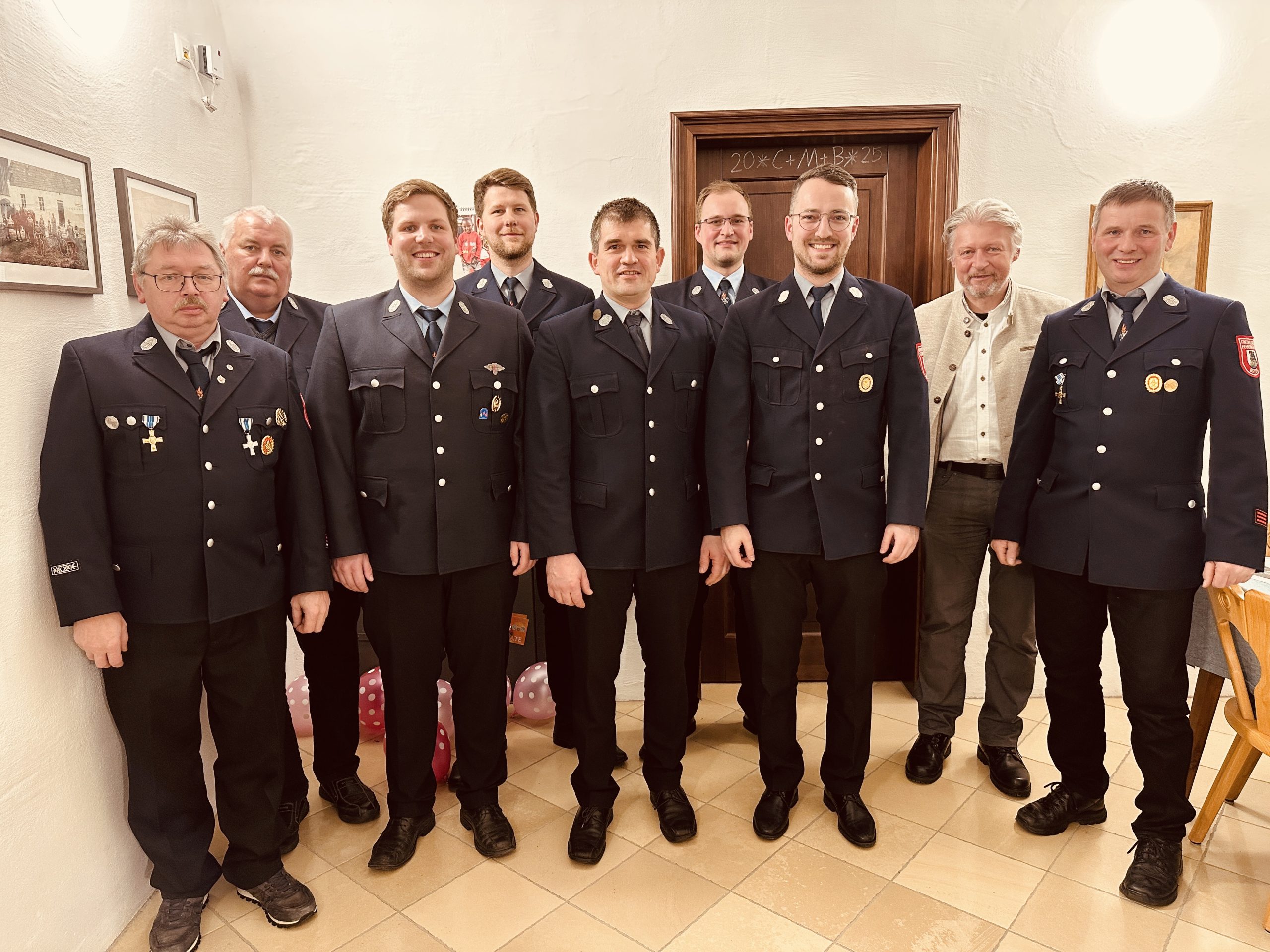 Josef Höcht (Kassenprüfer), Hubert Schwägerl (Kassenprüfer), David Schön (Schriftführer), Florian Kraus (2.Kommandant), Sebastian Lindner (Kassier), Florian Adam (Vorstand), Lothar Müller (Bürgermeister), Alfons Gleißner (2.Vorstand).